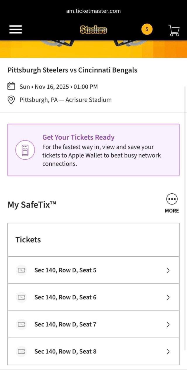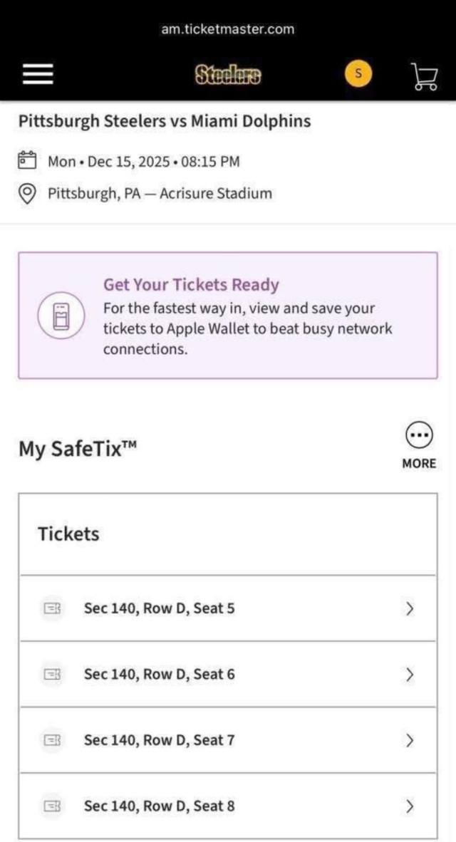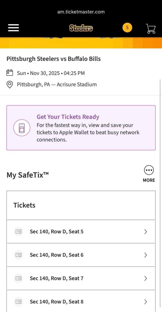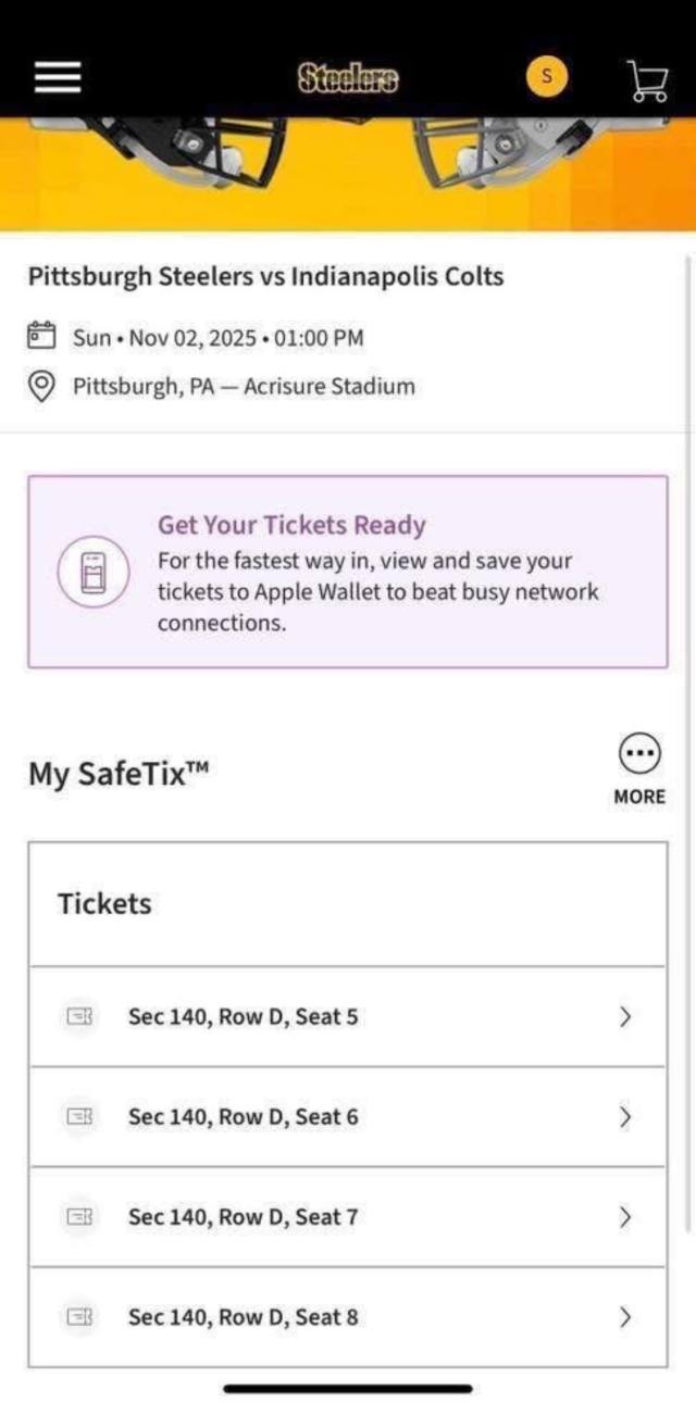Pittsburgh Steelers tickets for sale with proof of purchase for confirmation